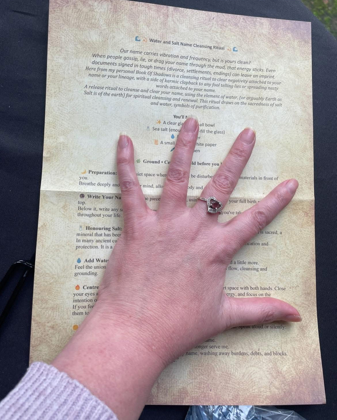 You can see the top wording next picture but this ritual spell is designed to cleanse your name, then add spicy steps like increase abundance and send a magical “ clap back” to anyone using your name in an unkind way. To that end, this is not “White Witchcraft”, it’s “Grey”